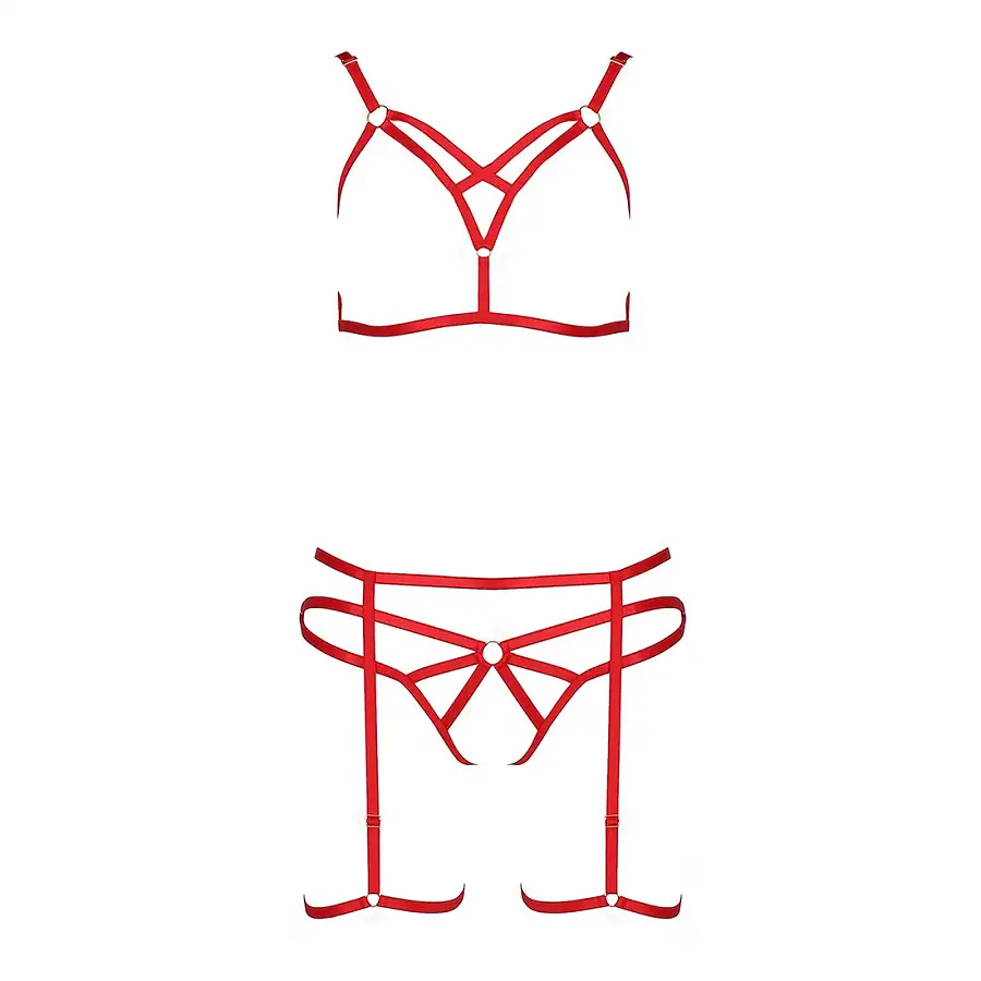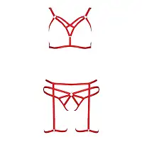 Пропонуємо купити еротичний комплект PASSION MAGALI SET, який підійде впевненим і рішучим жінкам. Тут немає взагалі нічого зайвого, він повністю складається з ремінців. Ви можете обіграти білизну, накинувши на неї легке плаття або туніку. Тонкі смужки будуть зазиваючи визирати. Костюм червоного кольору, кольору бажання, яке Ви точно побачите в очах вашого партнера. З такою білизною ви відчуєте себе найсексуальнішою і розкутою.