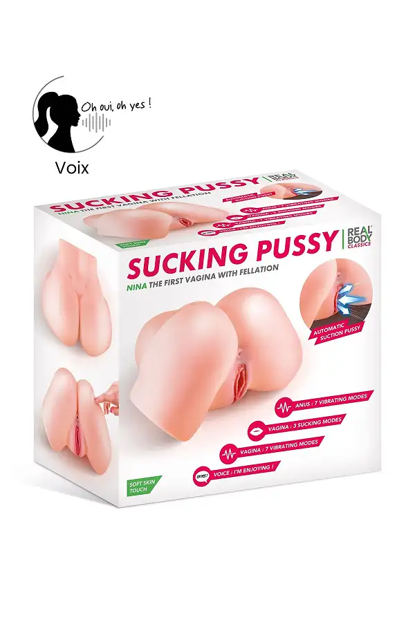 Смоктальна вагіна-мастурбатор Real Body Real Nina, вагіна та анус, з вібрацією і звуком