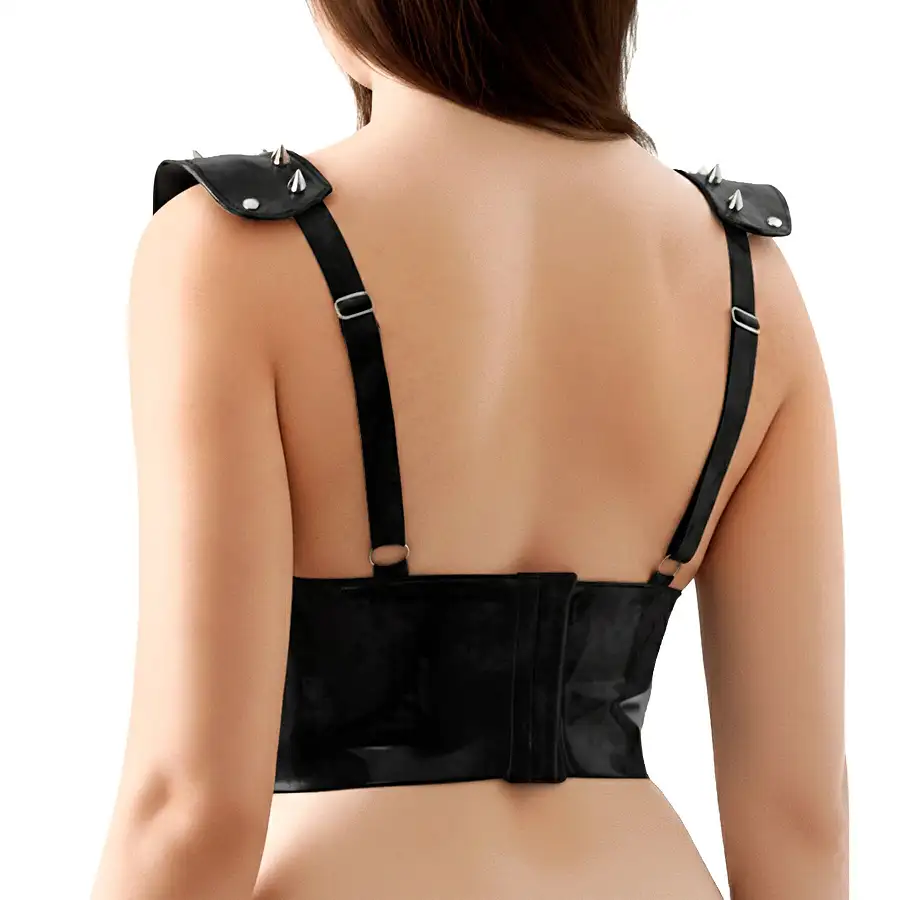 Ліф з шипами Art of Sex - Mistress, чорний з ефектом мокрого оксамиту, розмір S