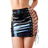Лакована спідниця на шнурівці Art of Sex - Molly, колір чорний з ефектом голограми, розміри L-2XL - це стильний і сексуальний елемент вашого гардеробу, який неодмінно приверне увагу оточуючих.