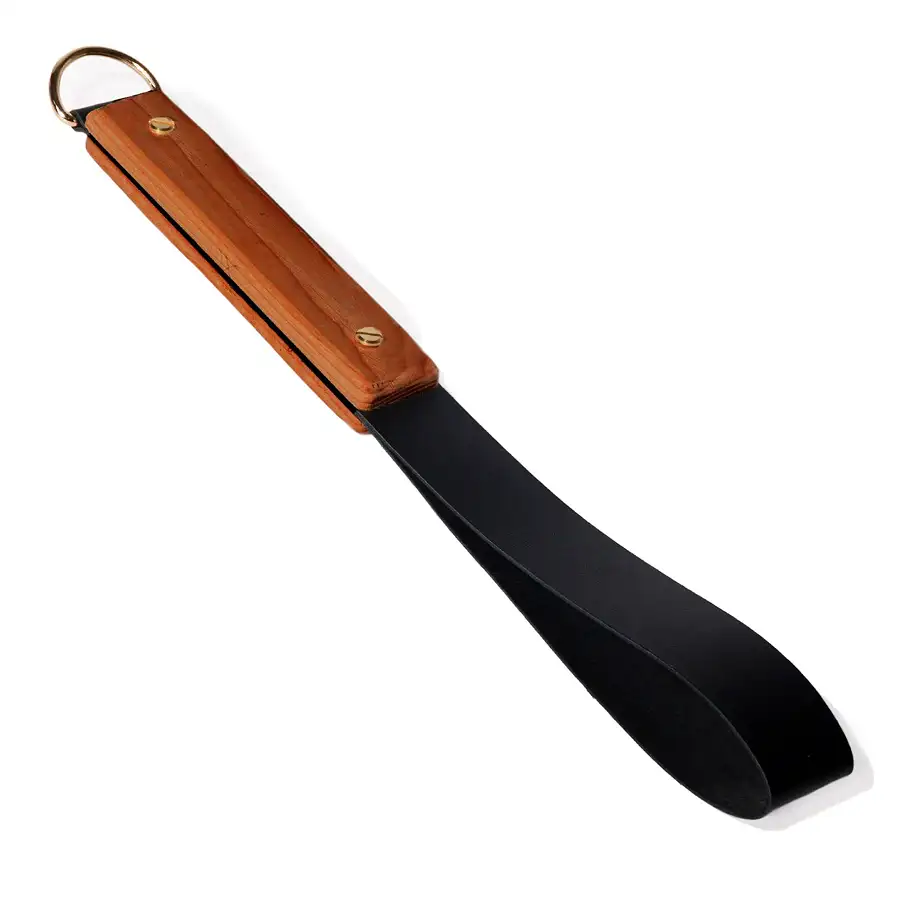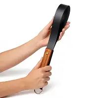 Ця шкіряна ляскалка стане ідеальним доповненням до вашої колекції аксесуарів BDSM. Виготовлена з високоякісної шкіри та обладнана зручною дерев'яною ручкою, вона дозволить вам насолоджуватися новими відчуттями та відкривати для себе нові межі в інтимних іграх.