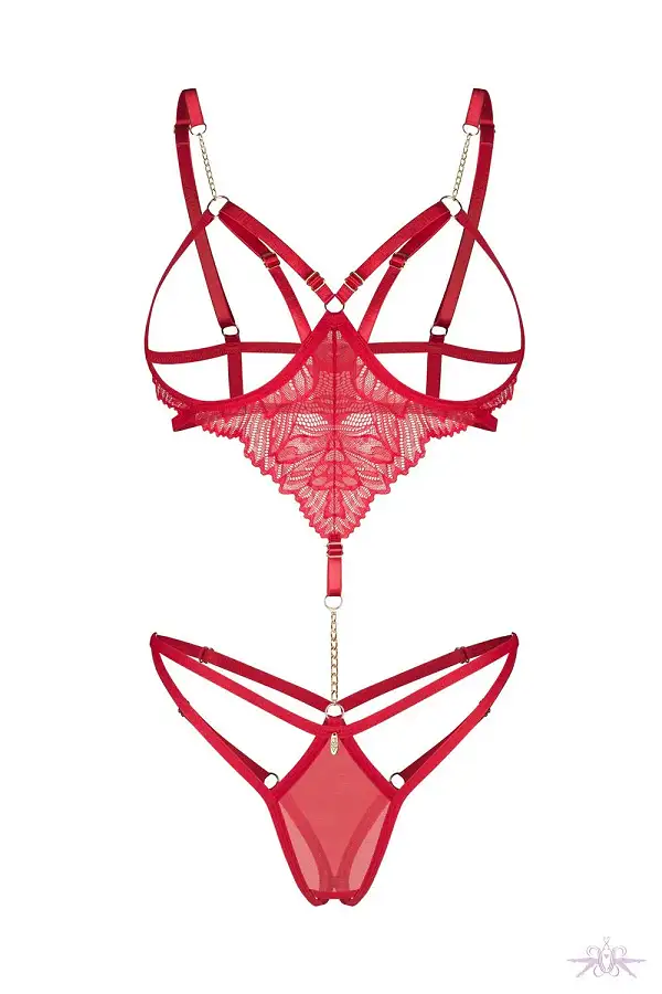 Це еротичне боді має відкриту проміжну частину, що додає йому загадковості і сприяє романтичній атмосфері.
