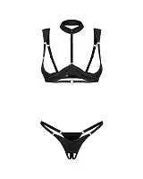 Цей набір складається з трусиків з відкритою промежиною та мереживні бюстгальтера з регульованими бретелями. Він ідеально підійде для створення запаморочливого образу в спальні.