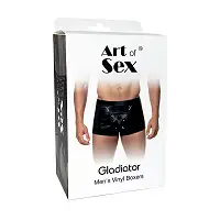Купівля чоловічих трусів з сюрпризом Art of Sex - Gladiator у нашому магазині має свої переваги. Ці чорні труси з ефектом мокрого оксамиту виготовлені з якісних матеріалів та мають розмір L, що забезпечує комфорт та приємний вигляд.