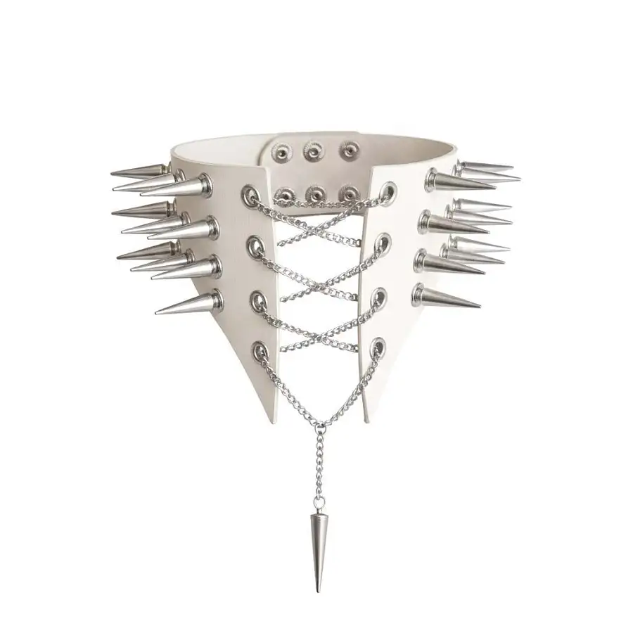 Чокер комір з шипами Art of Sex - Ariadne виготовлений з натуральної білої шкіри. Розмір L-2XL. Цей еротичний аксесуар стане відмінним доповненням до вашого образу, надаючи йому загадковості і сексуальності.