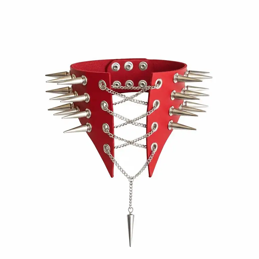 Чокер комір з шипами Art of Sex - Ariadne виготовлений з натуральної червоної шкіри. Розмір L-2XL. Цей еротичний аксесуар створений для того, щоб шинувати ваш образ і додати пікантності до вашого вбрання. Підійде як для повсякденного використання, так і для особливих випадків. Він стане чудовим доповненням до вашої білизни, гартерів або портупеїв.