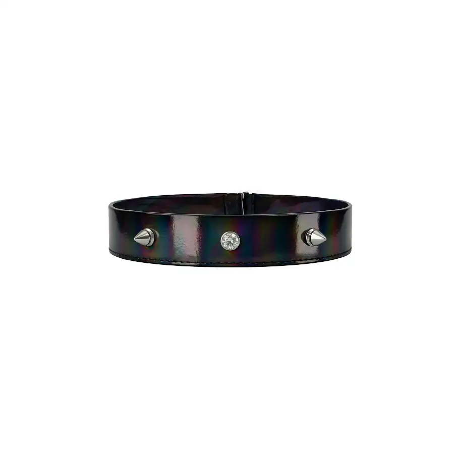 Лакований чокер з шипами Art of Sex - Mistress, колір чорний з ефектом голограми, розмір L