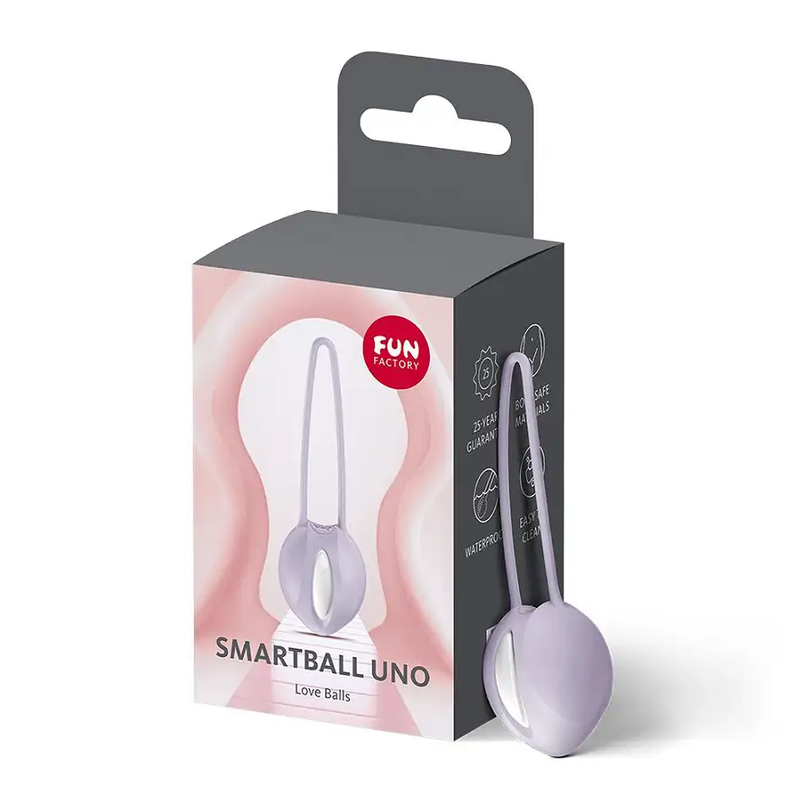 Вагінальна кулька Fun Factory SMARTBALL UNO розроблена для жінок із невеликою піхвою, яким може бути незручно довго ходити з класичними подвійними кульками. А одинарну конструкцію ви зможете носити не лише вдома, а й на вулиці. Рух обтяженої внутрішньої кульки змушує м’язи тазового дна працювати, навіть коли ви спеціально не напружуєте їх. За умови постійного використання ви помітите результати вже за кілька тижнів. Бажаєте прискорити процес? Повільно напружуйте й розслабляйте м’язи, коли кулька перебуває всередині.
