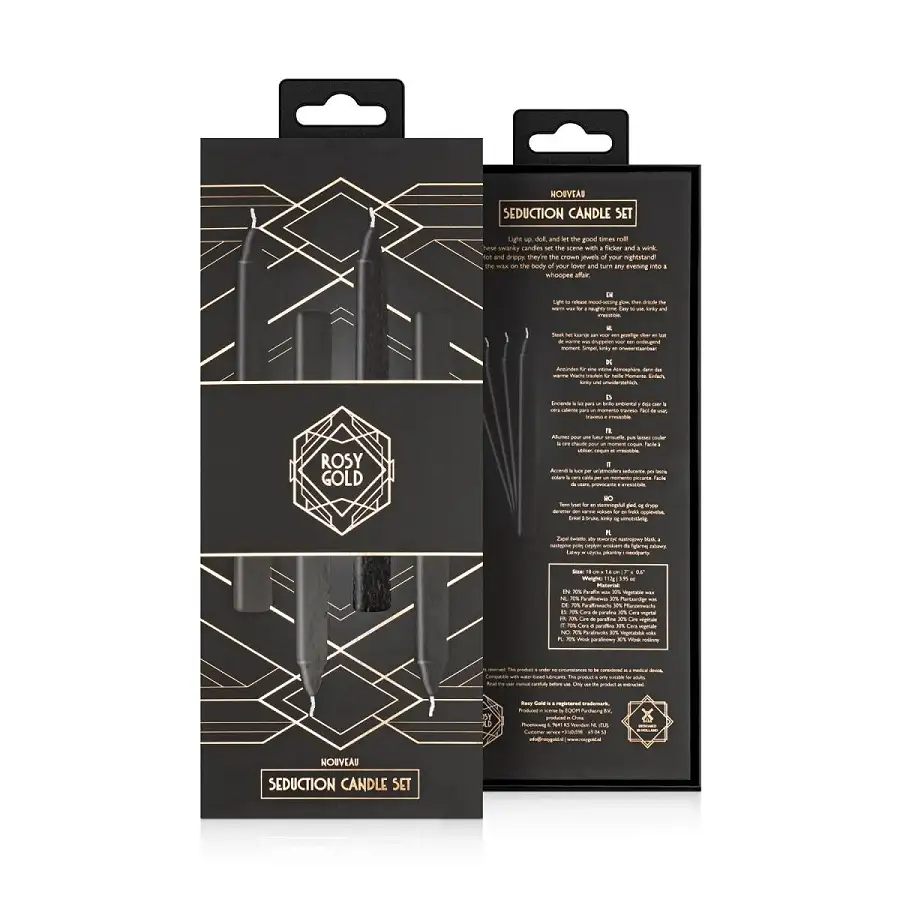 Набір свічок Rosy Gold - Seduction Candle Set - Black заохочує вас до нових відчуттів та вражень. Цей набір складається з чорних свічок, які перетворять будь-яке інтимне зустріч в запальну ігру. Вони ідеально підходять для парам, які шукають нові види задоволення та експериментів у спальні. Використовуйте їх як аксесуари BDSM для створення палкої та сексуальної атмосфери.