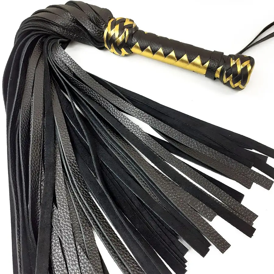 Переваги використання нашого чорного флогера класичного із золотою рукояттю очевидні. Виготовлений з натуральної шкіри, він відмінно підійде для шлепання і покарання. Завдяки 50 хвостам по 50см і зручній рукоятці довжиною 20см, цей флогер дозволить вам насолоджуватися іграми в підвладність і властивість, забезпечуючи при цьому безпеку та комфорт.