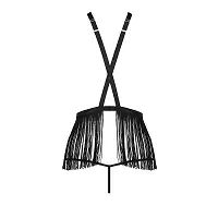 Відвертий і чуттєвий набір може стати вашою зброєю номер один у справі зваблення. По-перше, його можна надіти поверх сукні або білої сорочки, продемонструвавши свою сексуальність оточуючим. А, по-друге, його можна надіти на повністю оголене тіло і заявити про свою готовність перейти до пестощів прямо зараз! Чуттєві ремені, ефектно підкреслюють тіло, бахрома і мініатюрні стрінги зроблять ваш образ незабутнім. Ремені тягнуться і регулюються для ідеальної посадки.